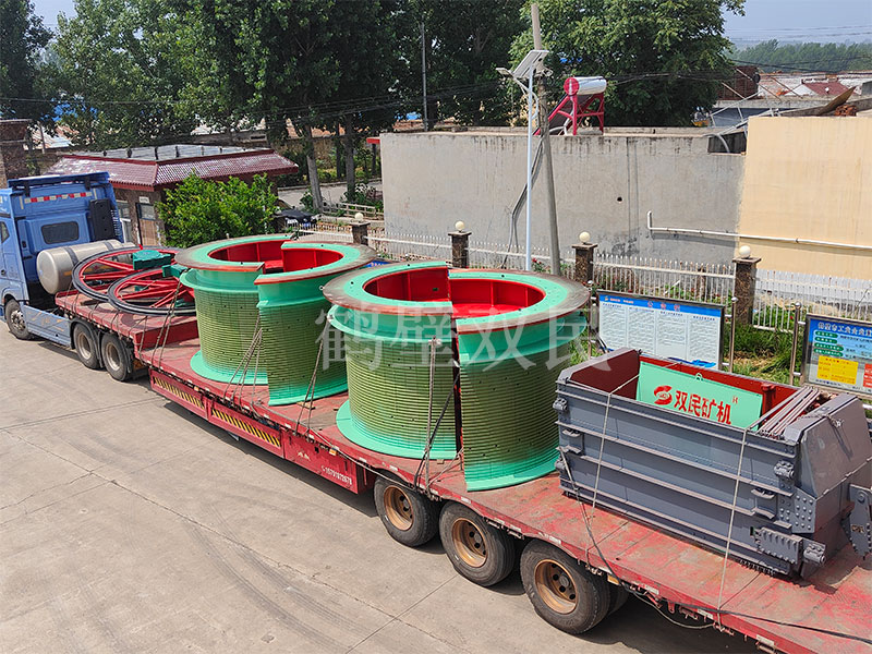 鑿井絞車廠家鶴壁雙民發(fā)往新疆的3米雙筒礦井提升機裝車出貨!