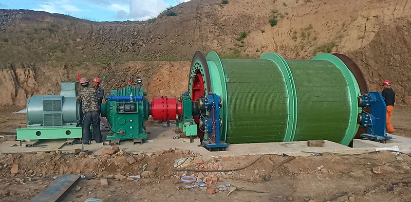 礦井提升機(jī)主要用于牽引煤礦等輔助加工工作,煤礦等礦山,道路傾角小于30度。電機(jī)通過減速機(jī)提供滾筒轉(zhuǎn)矩,鋼絲繩纏繞在線圈上,剎車裝置控制運(yùn)行并停止運(yùn)行,達(dá)到調(diào)度加工的目的。