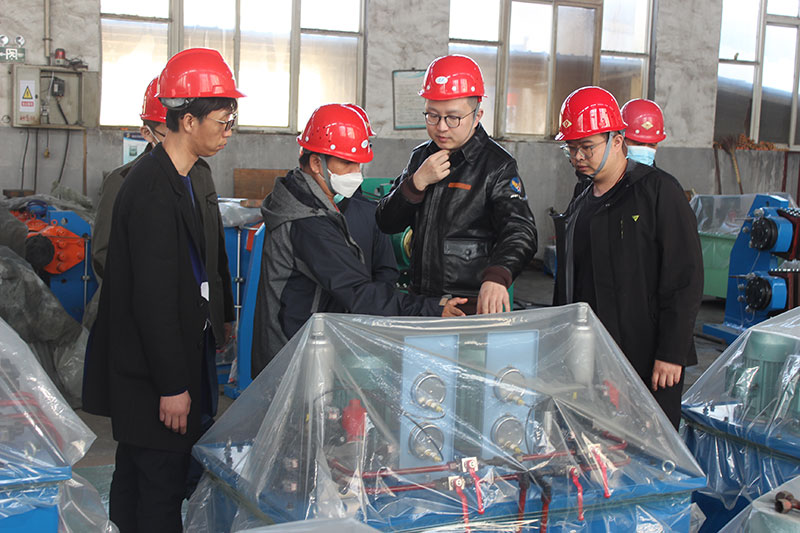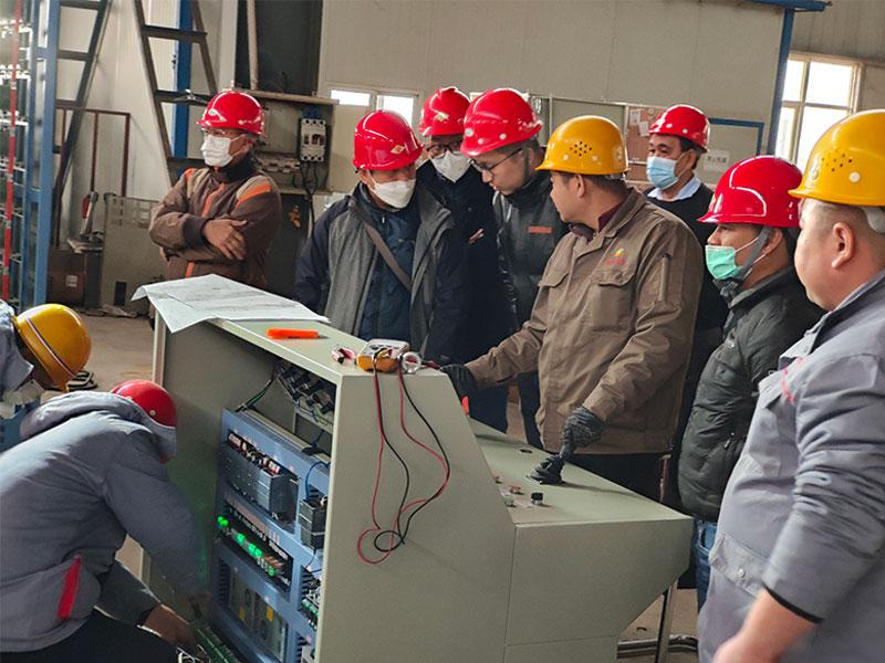 在理論指導(dǎo)之后,電工車間的張主任,又與客戶一起,帶上安全帽,來到電工車間。實踐指導(dǎo)客戶現(xiàn)場安裝線路,連接每一臺電器設(shè)備。