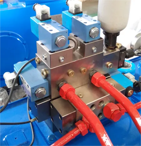 采用獨(dú)立的液動換向閥,使閥組油路塊的油孔設(shè)計得到了進(jìn)一步簡化。中信重工 E6161B/E6160B 型液壓站的液壓閥組的應(yīng)用如圖7 所示。