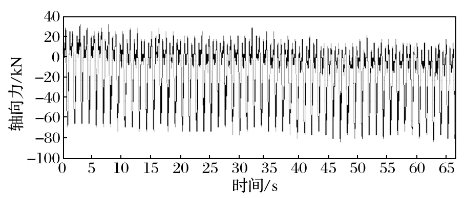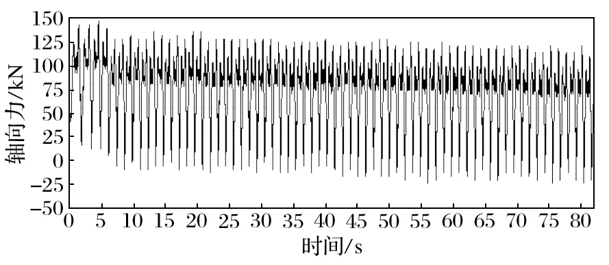 圖5 右罐重載上提時(shí)的軸向力曲線