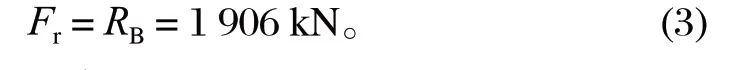 根據(jù)提升機(jī)受力、相關(guān)尺寸及提升系統(tǒng)參數(shù),可以得出:傳動(dòng)側(cè)軸承處的支反力 RB=1 906 kN,且認(rèn)為支反力 RB 和徑向力 Fr 大小相同,即