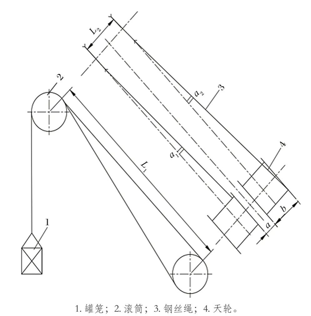 面對(duì)此種狀況,需對(duì)鋼絲繩天輪偏角進(jìn)行調(diào)整,調(diào)整方法諸多,一種方法是更換天輪襯墊,以減少鋼絲繩對(duì)天輪輪緣的磨損,但隨使用時(shí)間的延長(zhǎng),襯墊磨損亦會(huì)加劇,鋼絲繩終將再度產(chǎn)生干涉;另一方法為調(diào)整滾筒的水平位置,使?jié)L筒整體平移,將原基礎(chǔ)拆除并重新施工,但工程量大且耗時(shí)費(fèi)力。